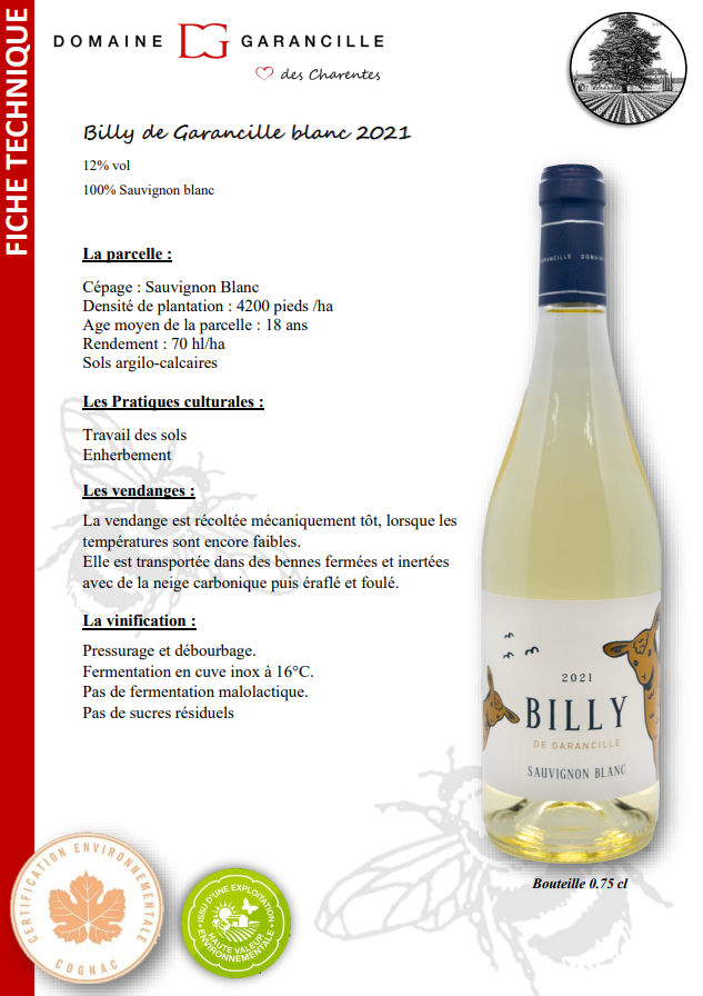 En bouche, vous retrouverez une belle vivacité rafraichissante et une tension caractéristiques de nos sauvignon blancs des Charentes.