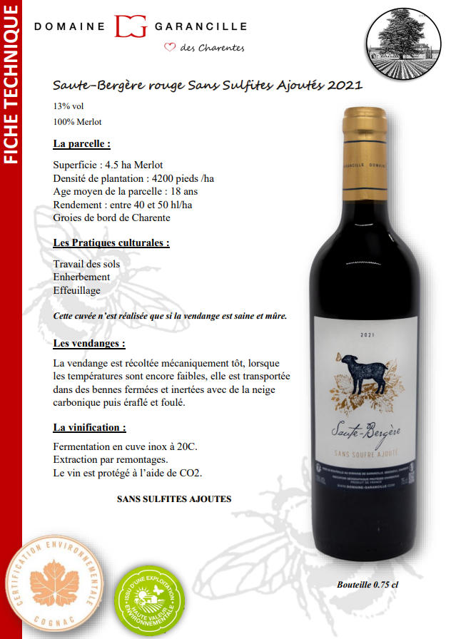 Notre rouge Saute-Bergère SSA est un vin sans sulfites ajoutés.